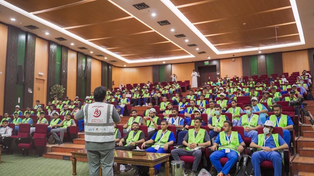 وخضع المتطوعون الذين بلغ عددهم ٥٥٠ متطوع إلى برنامج تدريبي مكثف يغطي الجانبين النظري والميداني لمدة ٦ أيام متصلة. وتلقت الفرق تدريباً مكثفاً لإتقان التعامل مع الحالات الصحية الشائعة في موسم الحج مثل الإجهاد الحراري، وضربات الشمس وكيفية التفريق بينها، وعلاج إصابات القدم السكري وحالات الإعياء، وطرق فرز الحالات أثناء الكوارث – لا قدر الله- والقدرة على تمييز الحالات التي تستدعي التحويل للمراكز الصحية.