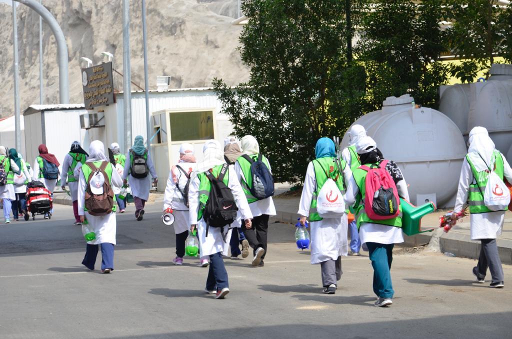 ووصلت الفرق إلى منى في وقت مبكر من صباح يوم التروية في المقرات المجهزة مسبقاً بالتعاون مع وزارة الصحة ووزارة الحج و العمرة معلنة بذلك حلول ساعة الصفر لأداء مهامهم.