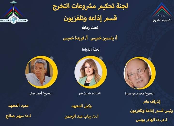 وجهت الدكتورة رباب عبد الرحمن وكيل المعهد الدولي العالي للإعلام بأكاديمية الشروق دعوة للفنانة والإعلامية مادلين من اجل المشاركة في لجنة الدراما الخاصة بمشروعات تخرج طلبة قسم الإذاعة والتلفزيون بالمعهد, لما تملكه من خبرة ونجاح في مشوارها الفني على مستوى الوطن العربي.