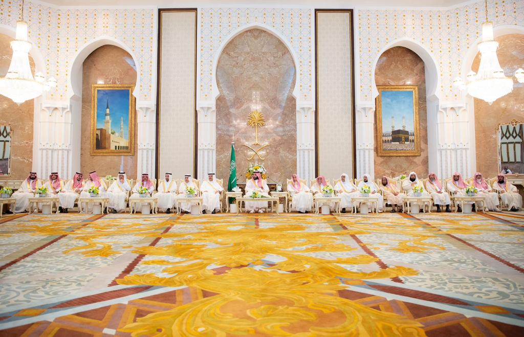 نيابة عن خادم الحرمين الشريفين الملك سلمان بن عبد العزيز آل سعود القائد الأعلى لكافة القوات العسكرية ـ حفظه الله ـ استقبل صاحب السمو الملكي الأمير محمد بن سلمان بن عبدالعزيز آل سعود ولي العهد رئيس مجلس الوزراء، في الديوان الملكي بقصر منى، اليوم، أصحاب السمو الملكي الأمراء، وسماحة مفتي عام المملكة، وأصحاب الفضيلة العلماء والمشايخ، وكبار المدعوين من دول مجلس التعاون لدول الخليج العربية، وأصحاب المعالي الوزراء، وقادة القطاعات العسكرية المشاركة في حج هذا العام، وقادة الأسرة الكشفية في المملكة المشاركة في الحج.