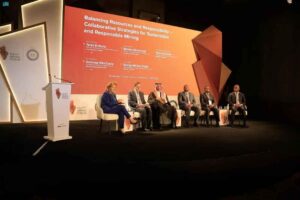 وأوضح الخريف خلال الجلسة التي جاءت بعنوان “الموازنة بين الموارد والمسؤولية – الإستراتيجيات المشتركة للتعدين المستدام في البلدان النامية”، أن المملكة اختارت التركيز على قطاع التعدين كخيار إستراتيجي يساعد على تحقيق مستهدفات رؤية السعودية 2030 في تنويع قاعدة الاقتصاد الوطني، مشيرًا إلى التركيز على كيفية تعظيم الأثر الاقتصادي للقطاع بدلاً من التأثير المالي القصير.
