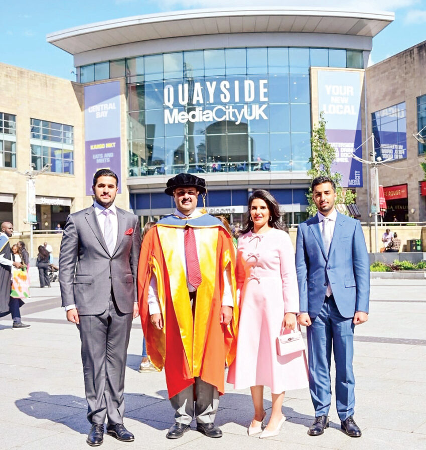 تسلم الشيخ خليفة بن دعيج آل خليفة، رئيس مجلس ادارة الجامعة البريطانية في البحرين، الدكتوراه الفخرية من جامعة سالفورد – مانشستر. وذلك تقديرا لمساهماته القيمة في مجال التعليم العالي في البحرين، وجهوده لتعزيز الشراكة بين جامعة سالفورد والجامعة البريطانية في البحرين.