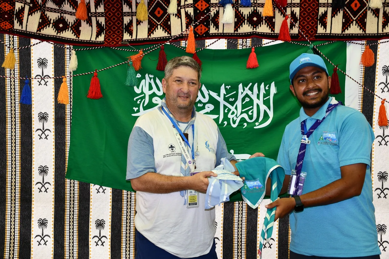يحرص الكثير من المشاركين في المخيم الكشفي العالمي الخامس والعشرين والمقام حالياً في سيؤول بكوريا الجنوبية بمشاركة أكثر من 43 ألف شاب وشابة يمثلون 158 دولة حول العالم؛ على تبادل الهدايا والأوسمة والباجات والتذكارات والمنتجات الشعبية الوطنية مع بعضهم البعض، وسجلت الهدايا السعودية رغبة كبيرة من المشاركين للحصول عليها لما تتميز به من الجمال في شكلها والمعاني الكشفية في عناصر تصميمها، وأصالة في مقتنياتها ويزداد حرص الكشافة من البلدان الإسلامية للحصول على العلم السعودي الذي يحمل الشهادتين.