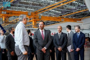 واطَّلع معاليه على أحدث التقنيات المستخدمة في صيانة وإصلاح الطائرات، كما بَحَثَ مع مسؤولي الشركة تعزيز مستوى الشراكة،واستعراض مستهدفات الإستراتيجية الوطنية للصناعة والفرص الاستثمارية التي توفرها في عدد من القطاعات الحيوية،إضافةً إلى مناقشة تعزيز التعاون في مجال الثورة الصناعية الرابعة وتقنيات التصنيع المتقدمة.