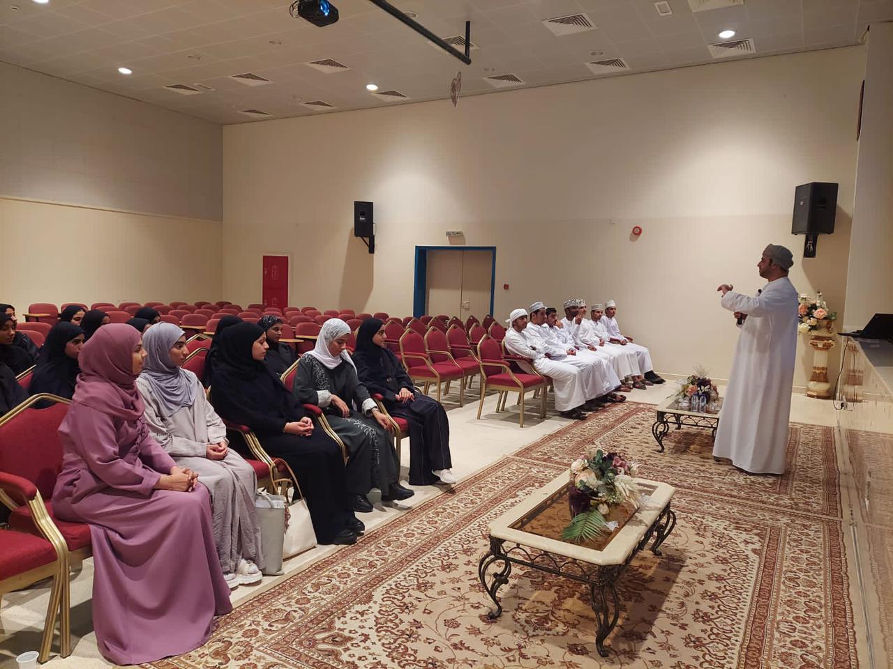 نظم فرع كلية عمان للعلوم الصحية بمحافظة الظاهرة اليوم محاضرات تعريفية للطلبة والطالبات بمختلف المستويات الدراسية ، حول مهارات الإبداع وقواعد التدريب العملي و كذلك الانضباط السلوكي للطلاب . بحضور الدكتورة زينب بنت خلفان المقبالي العميد المشارك بكلية عُمان للعلوم الصحية فرع محافظة الظاهرة . وعدد من الإداريين وأعضاء هيئة التدريس بالكلية.