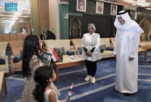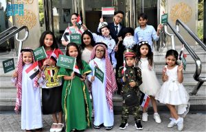 ورحّب السفير نقلي خلال الاستقبال بالأطفال الذين ارتدوا أزياءً تقليدية من المملكة ومصر، وألقوا كلمات تهانٍ للمملكة عكست ملامح العلاقات الأخوية بين البلدين الشقيقين، كما حملوا بفخرٍ وسعادة الأعلام السعودية والمصرية.