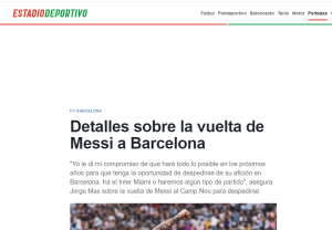 ونقل تصريحات مالك انتر ميامي خورخي ماس عن ميسي والتي قال فيها : “لقد أعطيته التزامي بأنني سأفعل كل ما هو ممكن في السنوات المقبلة حتى تتاح له الفرصة لتوديع جماهيره في برشلونة سيذهب إنتر ميامي أو سنخوض مباراة ما هناك ” ليقول لجماهير برشلونة وداعا.
