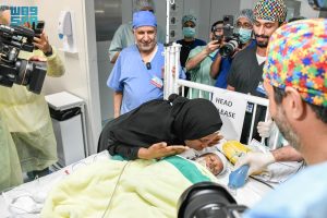 إنفاذًا لتوجيهات خادم الحرمين الشريفين الملك سلمان بن عبدالعزيز آل سعود، وصاحب السمو الملكي الأمير محمد بن سلمان بن عبدالعزيز ولي العهد رئيس مجلس الوزراء – حفظهما الله – تمكّن الفريق الجراحي المختص – بحمدالله – من فصل التوأم السيامي التنزاني “حسن وحسين”، وذلك بمستشفى الملك عبدالله التخصصي للأطفال بمدينة الملك عبدالعزيز الطبية للحرس الوطني بالرياض، بعد عملية جراحية معقدة استغرقت 16 ساعة نفذت على 9 مراحل، وشارك فيها 35 من الاستشاريين والمختصين من أقسام التخدير وجراحة الأطفال وجراحة المسالك البولية للأطفال والتجميل والعظام، بالإضافة إلى الكوادر التمريضية والفنية.