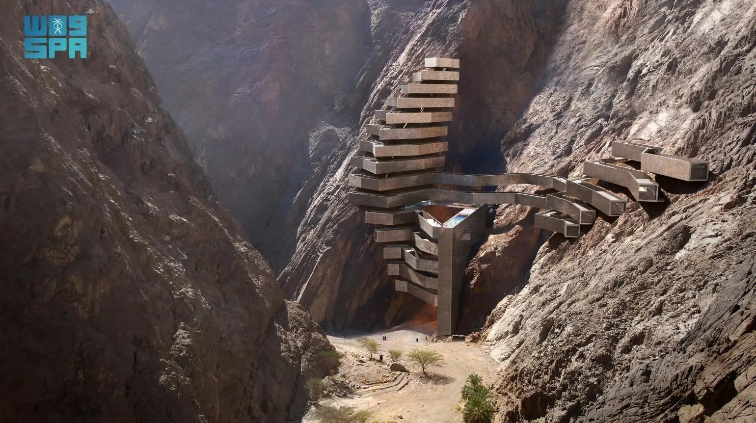 وتتميز واجهة الفندق بمراياها العاكسة ذات التقنيات العالية، التي تبرز جمال المناظر الطبيعية المحيطة ومنحدرات الوادي، ما يسمح بمرور المجرى الطبيعي للوادي عبر الفندق، الأمر الذي يوفر للزوار تجربةً فريدة وتفاعلية.