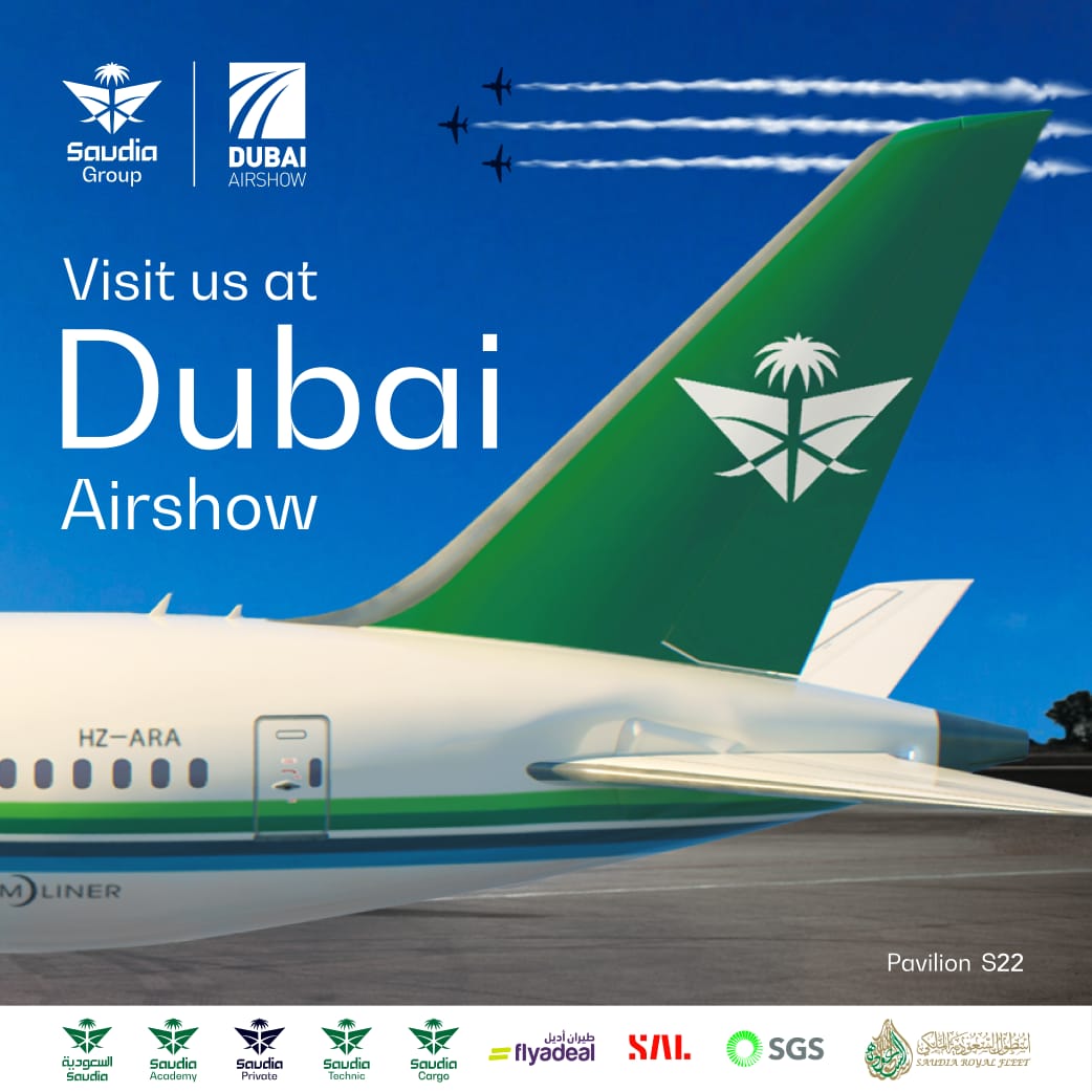تشارك مجموعة السعودية بمعرض دبي للطيران في نسخته الثامنة عشرة خلال الفترة من 13 وحتى 17 نوفمبر 2023، حيث يعتبر ملتقى يجمع روّاد صناعة النقل الجوي والمبتكرين لاستعراض وتحديد الفرص والتوجهات المستقبلية، ويُعد المعرض المناسبة الأولى التي تشارك فيها المجموعة بعد إطلاق هويتها وعصرها الجديد والذي يُبرز دور شركاتها كمنظومة طيران متكاملة وإلى جانب ذلك مساهمتها من خلال الاعتمادات الدولية التي حصلت وستحصل عليها؛ لخدمة الصناعة وشركات الطيران في المنطقة.
