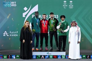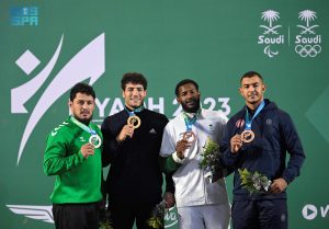 توّج صاحب السمو الأمير فهد بن جلوي، نائب رئيس اللجنة الأولمبية والبارالمبية السعودية، مدير دورة الألعاب العالمية القتالية “الرياض 2023″، الإماراتي حمد القبيسي بذهبية وزن تحت 85 كجم في ختام اليوم الأول لمنافسات الجوجيتسو، المقامة في صالة الأرينا الرياضية بجامعة الملك سعود، ونال السعودي عمر ندا الميدالية الفضية، وأحرز الكندي ناثان دوس سانوس الميدالية البرونزية.
