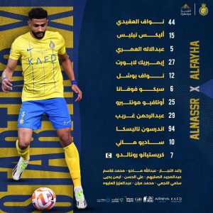 وتواجد النجم البرتغالى كريستيانو رونالدو، على رأس تشكيل النصر والذى جاء كتالي: