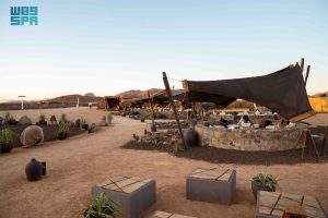 وفي تيماء يستمتع الزائر بأجواء المخيم البدوي بشكل يومي ويستمر إلى 1 مارس 2024، ويمكن للزوار استخدام بطاقة جولة تيماء التراثية لزيارة المخيّم البدوي، والاستمتاع بتجربةٍ ثقافيةٍ ترفيهيةٍ تعرّفهم بتفاصيل الحياة اليومية التي عاشها أهل البادية في الماضي، مع ضيافة عربية أصيلة، والتقاط الصور التذكارية مع الهجن والصقور.