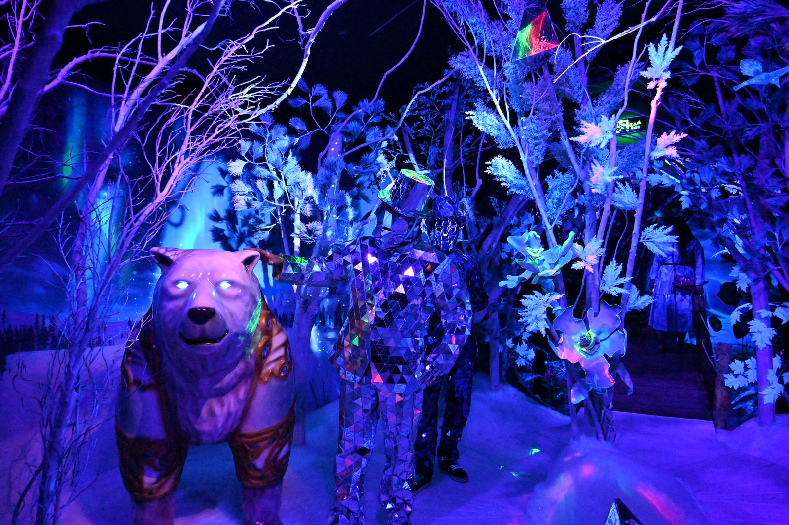 تتميز غابة الحكايات الخيالية بأنها متاهة سحرية بها جنيات وحيوانات وطيور رائعة. من المستحيل أن تضيع، لأن الغزال السحري سوف يرشدك دائمًا خلال الطريق. سوف تجد بحيرة وهرمًا: انطباعًا عن طريق الحرير وشجرة الحياة بالزهور والنباتات. أذهل نفسك بغابة ثلجية بها الدب القطبي والبوم والطيور الشتوية.