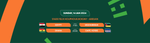 وتنطلق مباريات بطولة كأس الأمم الإفريقية بمباراة كوت ديفوار مع غينيا بيساو، بينما تواجه نيجيريا نظيرها منتخب غينيا الإستوائية.
