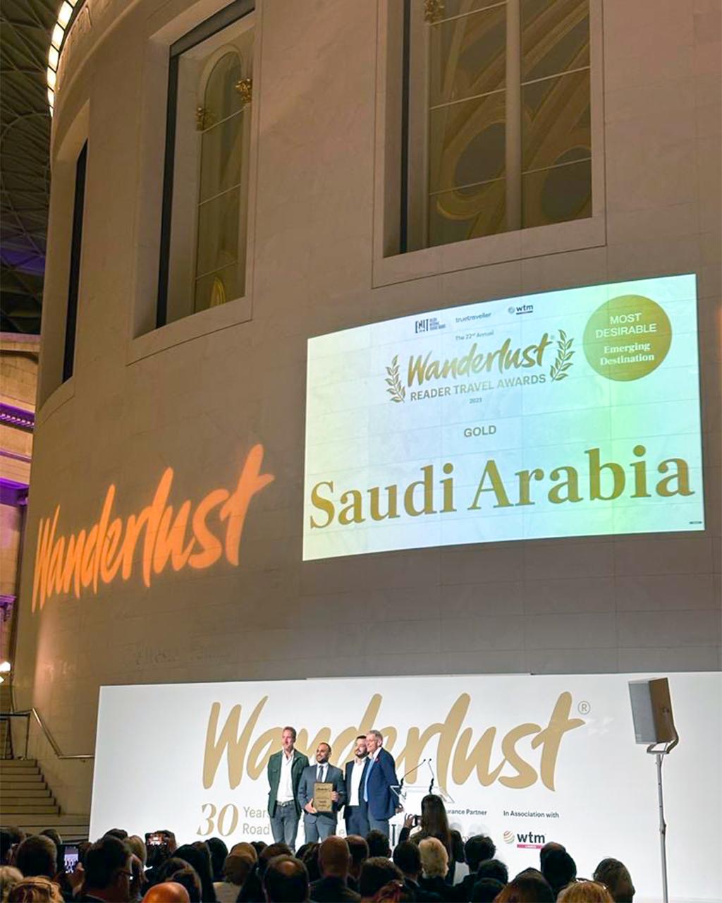 وفي ذات السياق؛ حصلت المملكة العربية السعودية على الجائزة الذهبية لـ ” أكثر الوجهات الحديثة الجاذبة للسياح” لعام 2023 على مستوى العالم ، والمقدمة من قبل مجلة “واندرلَست” البريطانية؛ حيث تصدرت قائمة الوجهات الأخرى عبر تصويت أكثر من 90 ألف قارئ.