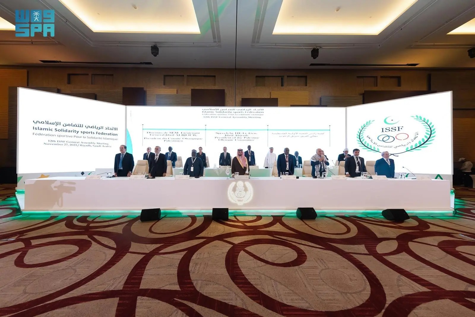رأس صاحب السمو الملكي الأمير عبدالعزيز بن تركي بن فيصل بن عبدالعزيز رئيس الاتحاد الرياضي للتضامن الإسلامي، اجتماع الجمعية العمومية الثاني عشر للاتحاد الذي استضافته مدينة الرياض.