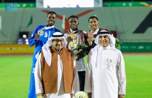 كما فاز محمد المعاوي لاعب نادي الشباب بذهبية سباق 400 متر حواجز، وحصل لاعبا الهلال إدريس سفياني وعزام أبو بكر على الفضية والبرونزية على الترتيب.