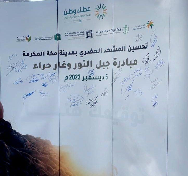 شارك مكتب وزارة البيئة والمياه والزراعة بالعاصمة المقدسة في مبادرة تنظيف جبل النور وغار حراء لتحسين المشهد الحضري بمدينة مكة المكرمة تزامناً مع اليوم العالمي للتطوع مع الجهات الحكومية والخاصة ( الهيئة الملكية لمدينة مكة المكرمة والمشاعر المقدسة ، امانة العاصمة المقدسة ، جمعية نماء الاهلية) .
