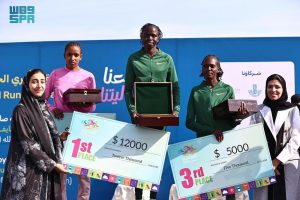 وجرى تتويج الفائزين والفائزات بالسباق، الذي شهد مشاركة أكثر من 6 آلاف متسابق ومتسابقة من مختلف الفئات العمرية بينهم نخبة من العدائين الدوليين، وشهد تألق خاص لذوي الإعاقة إلى جانب الصغار والكبار، قطعوا خلالها مسافة 5 كيلومترات مسافة السباق لهذا العام.