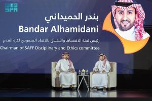 وانطلقت أعمال المؤتمر، بالجلسة الحوارية الأولى التي تطرق من خلالها رئيس لجنة الانضباط والأخلاق بندر الحميداني، عن لجنة الانضباط والأخلاق، وأبرز مهام اللجنة وما تضطلع به من مسؤوليات ومهام، ونطق عملها، وتعديلات اللائحة.