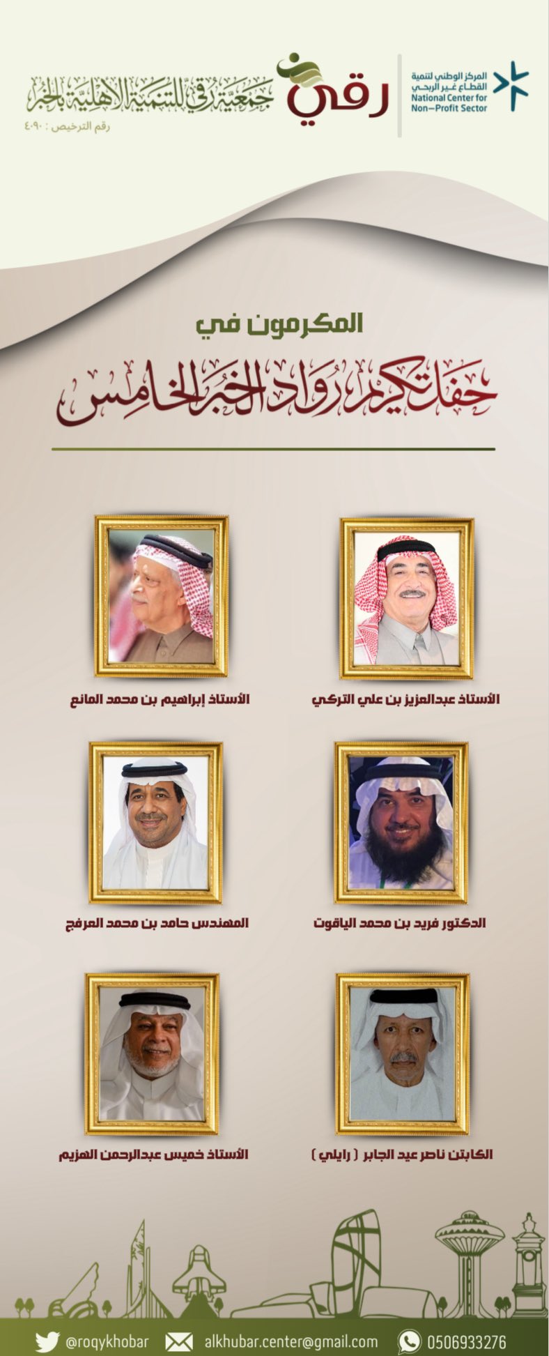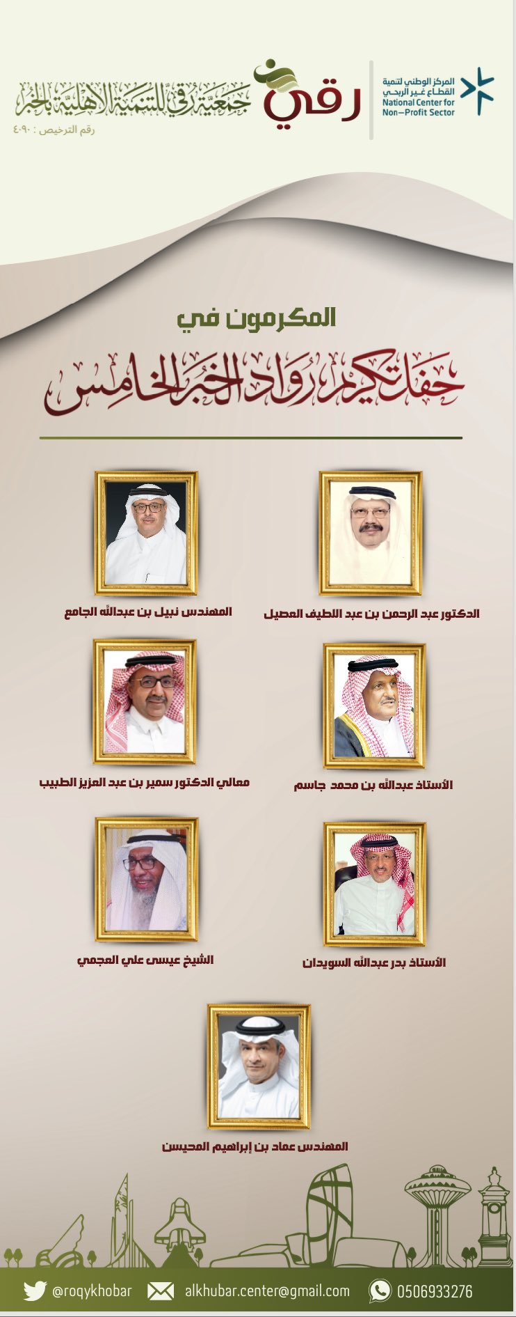 الليلة جمعية “رقي للتنمية الاهلية” تقيم حفل تكريم لرواد الخبر الخامس