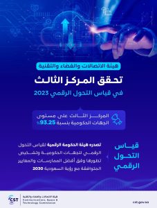 هيئة الاتصالات والفضاء والتقنية ضمن أفضل ثلاث جهات حكومية في قياس التحول الرقمي 2023