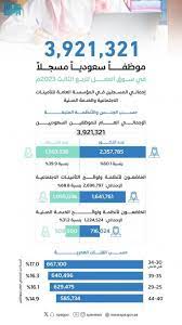 3,9 ملايين موظف سعودي مسجل في سوق العمل للربع الثالث 2023