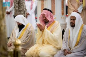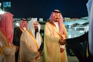وكان في استقبال سمو أمير منطقة المدينة المنورة لدى وصوله المسجد النبوي الشريف، معالي رئيس الشؤون الدينية في المسجد الحرام والمسجد النبوي الشيخ الدكتور عبد الرحمن بن عبد العزيز السديس، ووكيل الشؤون الدينية بالمسجد النبوي الدكتور محمد بن أحمد الخضيري، وأصحاب الفضيلة أئمة وخطباء المسجد النبوي وعدد من المسؤولين.