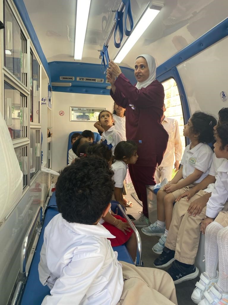 كما أننا نعمل على مساعدة الطفل على التكيف مع البيئة المحيطة فيما بعد عندما يكبر ليقدر دورها ويتعامل مع رجالها بإيجابيه، ومن هذا المنطلق قمنا بترتيب زيارات ميدانية الى العديد من المؤسسات المجتمعية كالمساجد والمراكز الصحية والخدمية، فوجدنا ترحيبا وتعاوننا جلياً.