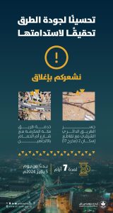 ويأتي ذلك ضمن جهود الأمانة المتواصلة نحو تعزيز جودة الطرق، للارتقاء بكفاءتها وتطويرها، وذلك من خلال أعمال الصيانة الدورية التي من شأنها تحقيق مستهدفات الخدمات المقدمة وتحسين نمط التنقل الآمن للسكان، نحو الوصول إلى مدينة مزدهرة ومستدامة, إلى جانب الارتقاء بالخدمات البلدية، وتعزيزالتنمية الحضرية، ودعم ركيزة إيجاد بنية تحتية متطورة ذكية، ترفع مستوى تنافسية العاصمة دوليًا، وتلبي تطلعات السكان.