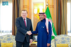 والتقى معاليه كل من معالي وزير تنمية المعادن الصلبة النيجيري ديلي آلاك، ووزيرة المناجم بجمهورية الكونغو الديمقراطية أنطوانيت نسامبا كالامباي، ومعالي وزير تنمية المناجم والمعادن في زامبيا بول سي كابوسوي، ومعالي وزير الشؤون الخارجية في جمهورية بيلاروسيا سيرجي ألينيك، وبحث معهم سبل تطوير التعاون المشترك في قطاعي الصناعة والتعدين، والطلب العالمي المتزايد على المعادن، كما ناقش معهم الفرص الاستثمارية الواعدة في مجال التعدين في المملكة.