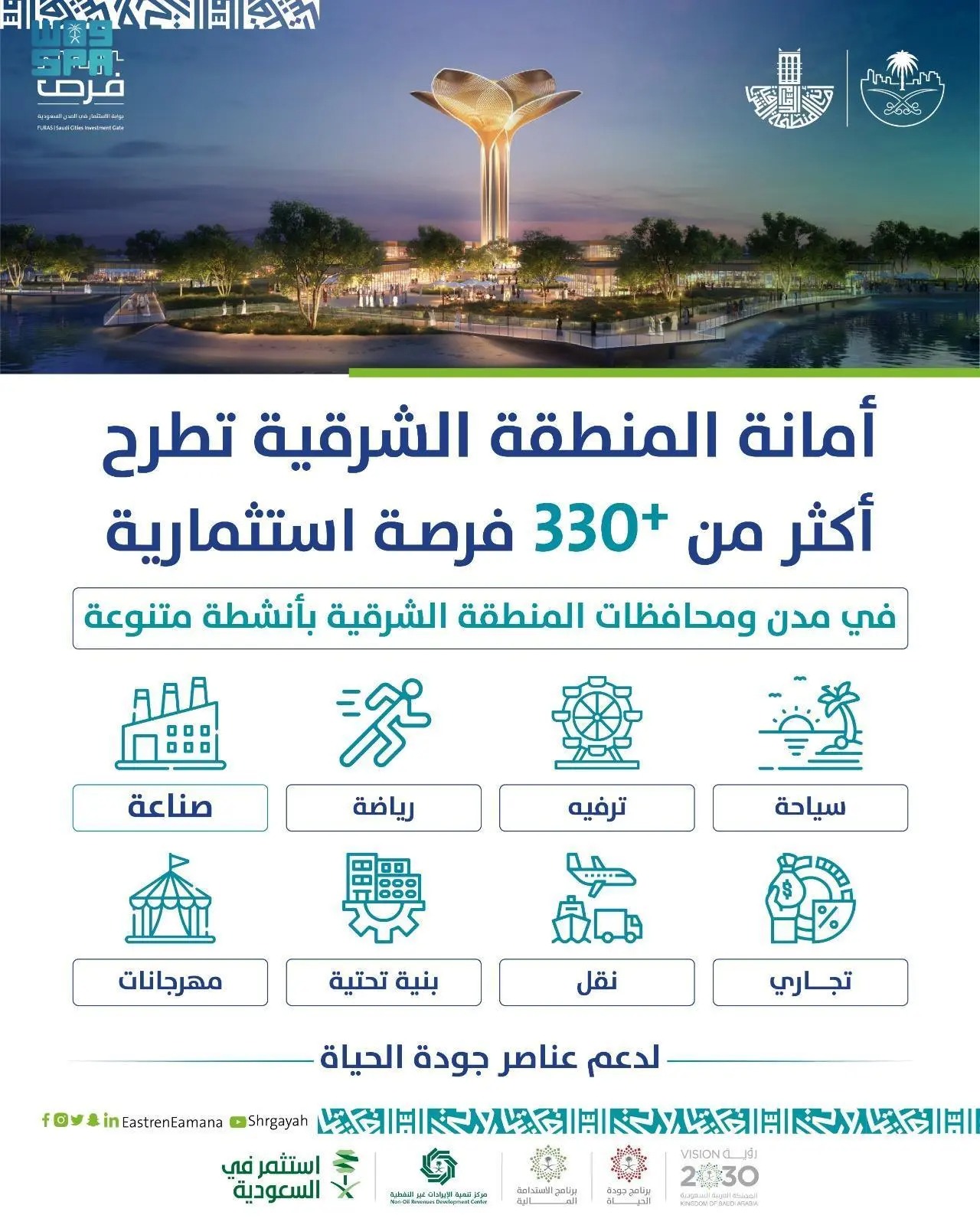 أمانة الشرقية تطرح 238 فرصة استثمارية متنوعة بالمنطقة