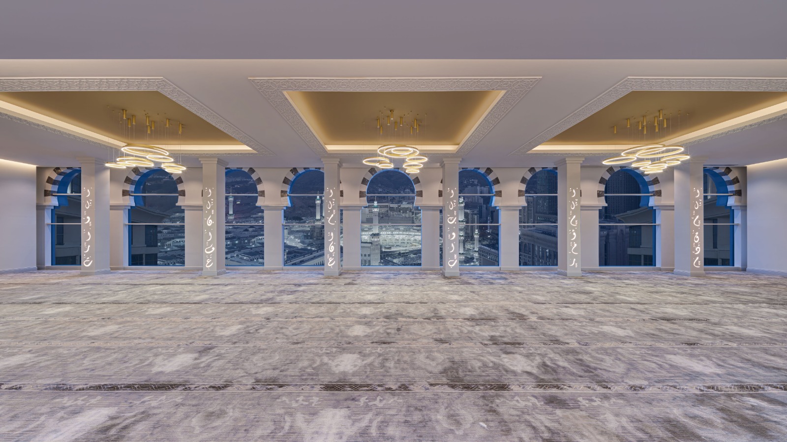 ويتسع المصلى لحوالي 520 شخصاً ضمن مساحة واسعة تبلغ 550 متر مربع، مما يوفر مكاناً مثالياً للصلاة وسط إطلالات مذهلة على المسجد الحرام . ويحظى المصلون عند صلاة الفجر بفرصة مشاهدة شروق الشمس على مدينة مكة المكرمة، في تجربة روحانية تزخر بالسكينة والهدوء. كما يرسم ضوء الشمس أثناء غروبها أجمل الألوان الدافئة داخل المصلى، ليشكل ملاذاً مثالياً للتأمل والصلاة.