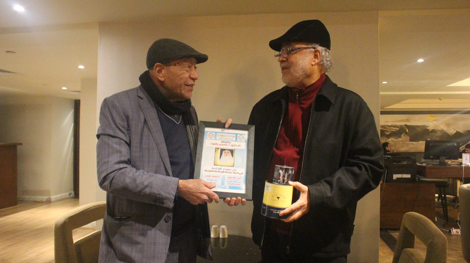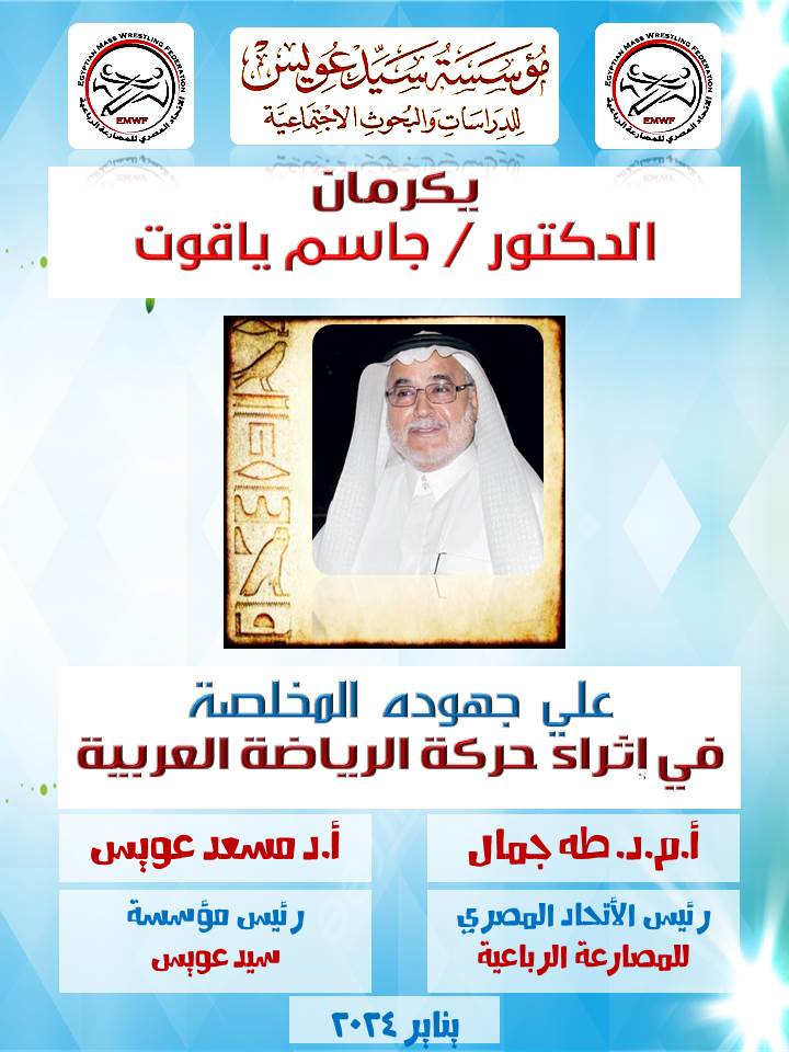 جاء ذلك عقب حفل التكريم الذي أقامته مؤسسة سيد عويس للدراسات والبحوث الإجتماعية للدكتور جاسم الياقوت رئيس اللجنة العليا المنظمة للمبادرة الوطنية كرتنا ثقافتنا الفائز بجائزة كتب السلام الدولية لعام 2022 تكريماً لجهوده المخلصة في إثراء الحركة الرياضية العربية.