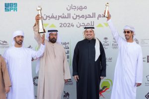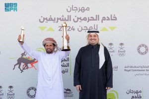 توج صاحب السمو الأمير فهد بن جلوي بن عبد العزيز بن مساعد رئيس مجلس إدارة الاتحاد السعودي للهجن اليوم، ملاك الهجن من الإمارات وقطر الفائزين بأولى ألقاب أشواط رموز مهرجان خادم الحرمين الشريفين للهجن في فئة الـ “حقايق”، والذي انطلقت نسخته الأولى أمس وينظمها الاتحاد السعودي للهجن حتى الـ 18 من شهر فبراير الجاري، على أرض ميدان الجنادرية في مدينة الرياض.