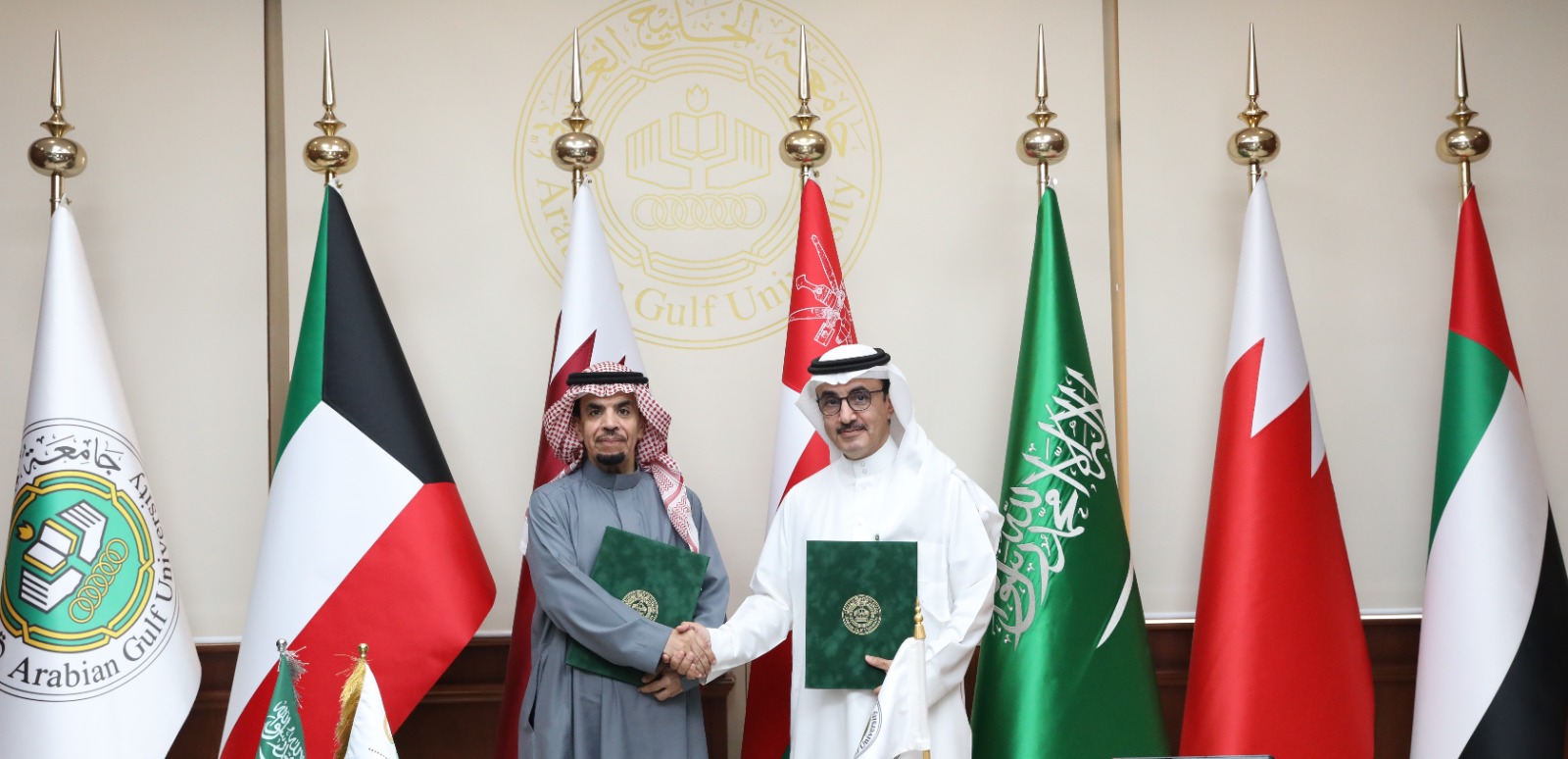 وقع معالي رئيس جامعة الخليج العربي الدكتور سعد بن سعود آل فهيد مذكرة تفاهم مع المدير العام بالمركز الإقليمي للجودة والتميز في التعليم الدكتور عبدالرحمن بن إبراهيم المديرس، تنص على تطوير مشروع الشراكة وتشجيع وتعميق التعاون الاستراتيجي المستقبلي بين الجانبين.