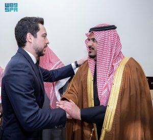 وأدى الصلاة مع سموه، صاحب السمو الملكي الأمير الحسين بن عبدالله الثاني ولي عهد المملكة الأردنية الهاشمية.