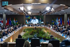 وألقى سمو وزير الخارجية كلمةً في الاجتماع، هنأ في بدايتها معالي وزير خارجية جمهورية البرازيل الاتحادية ماورو فييرا، على تولي بلاده رئاسة مجموعة العشرين هذا العام.