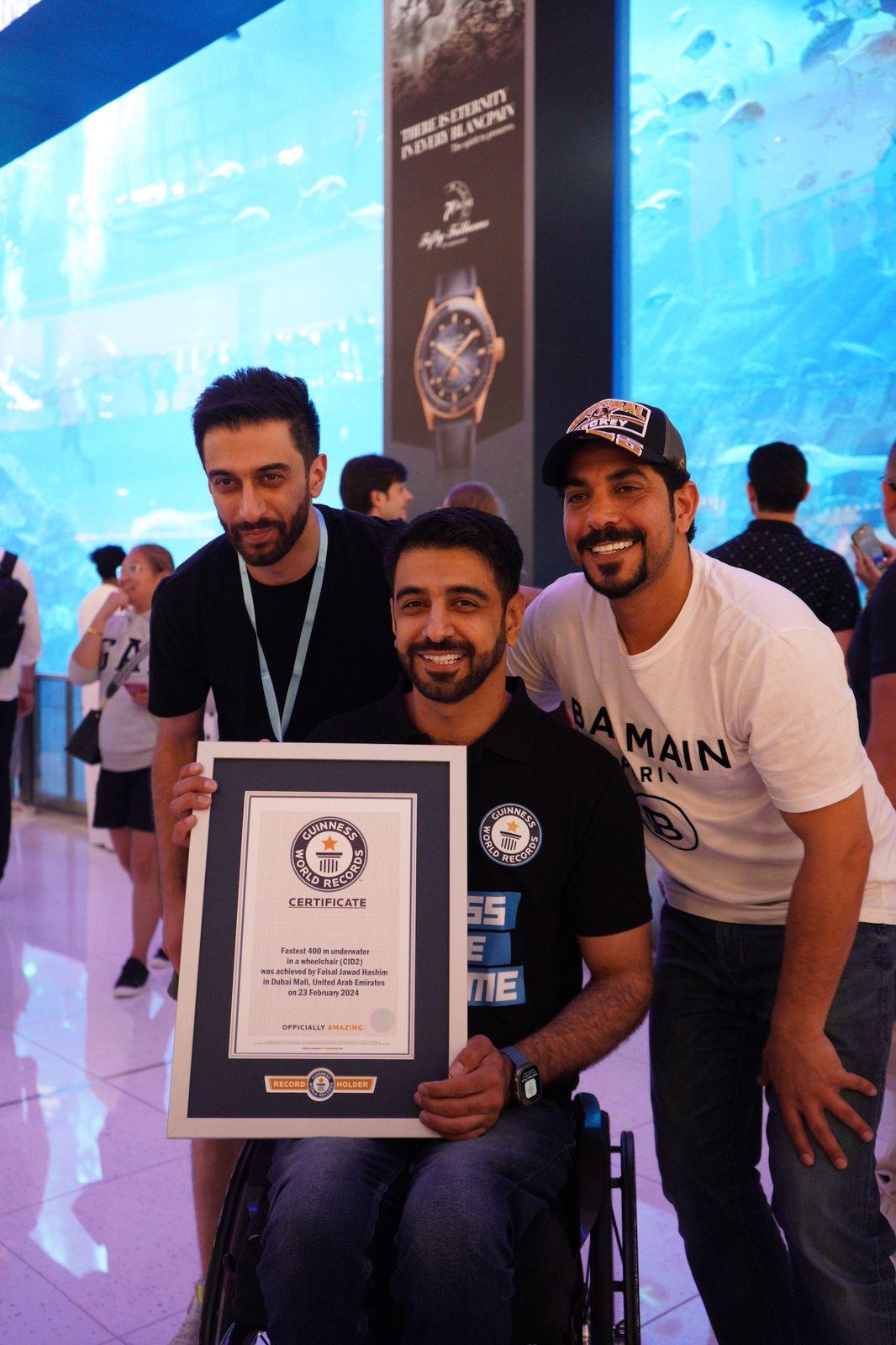 تسجيل رقم قياسي جديد لأسرع غوص باستخدام كرسي متحرك تحت الماء في دبي أكواريوم