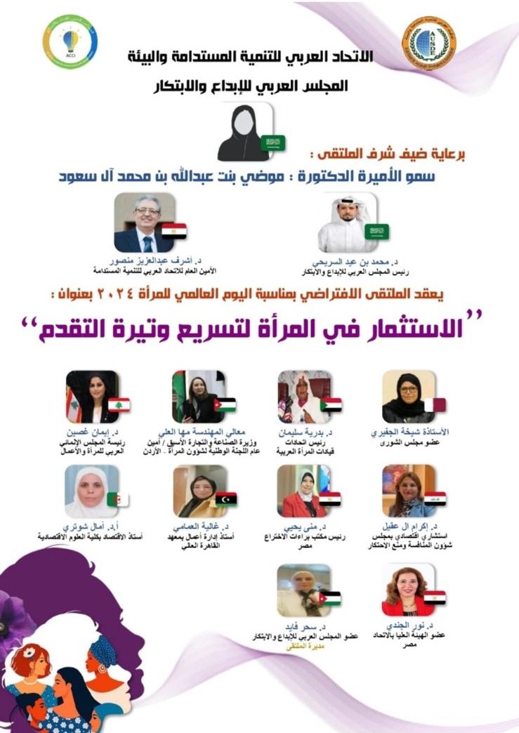 تشارك الدكتورة اللبنانية ايمان غصين رئيسة المجلس العربي الانمائي للمرأة والأعمال في الملتقى الافتراضي للمجلس العربي للإبداع والإبتكار الذي. يقام بمناسبة اليوم العالمي للمرأة ٢٠٢٤