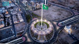 راية التوحيد ترفرف عاليًا بسارية جدة احتفاء بيوم العلم