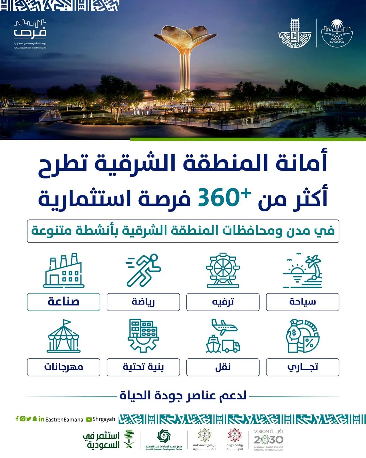 أمانة الشرقية تطرح 362 فرصة استثمارية متنوعة بمدن ومحافظات المنطقة