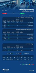 “هيئة الطيران المدني” تُصدر تصنيف مقدِّمي خدمات النقل الجوي والمطارات لشهر فبراير 2024