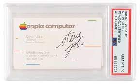 سبق أن قامت RR Auction ببيع 10 بطاقات عمل لستيف جوبز بالمزاد العلني، يعود تاريخ واحدة منها فقط إلى عام 1983/ وهذه هي البطاقة الموقعة الوحيدة من ذلك العام وواحدة من البطاقات الوحيدة التي اجتازت مصادقة PSA/DNA.