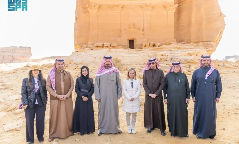 وزارت رئيسة الوزراء الإيطالية جيورجيا ميلوني مؤخرًا محافظة العُلا، إيذانًا بمرحلة جديدة من التعاون الثقافي, واطلعت ميلوني والوفد المرافق لها على مجموعة من المعالم الثقافية والتاريخية في العُلا، بما في ذلك موقع الحِجر، المدرج على قائمة اليونسكو للتراث العالمي.