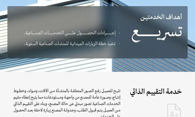وقال الجرّاح:”إن خدمة التقييم الذاتي تتيح للمستفيد توثيق مرافق منشأته من آلات ومعدات ومواد وخطوط إنتاج وواجهة ومستودعات؛ عبر رفع صورها على منصة “صناعي”، بما يمنح مقيّم الخدمات الصناعية تصورًا مبدئيًا عن حالة المصنع، وبناءً على التقييم الذاتي من العميل يقبل طلبه، وتجدول زيارة لاحقة لمصنعه بعد حصوله على الخدمات، في خطوة تستهدف تقليص الفترة الزمنية لخدمة الشركاء والمستفيدين”.
