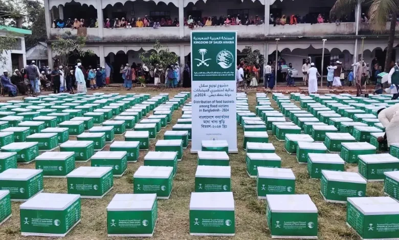 مركز الملك سلمان للإغاثة يوزع 500 سلة غذائية في عدة مناطق بجمهورية بنغلاديش