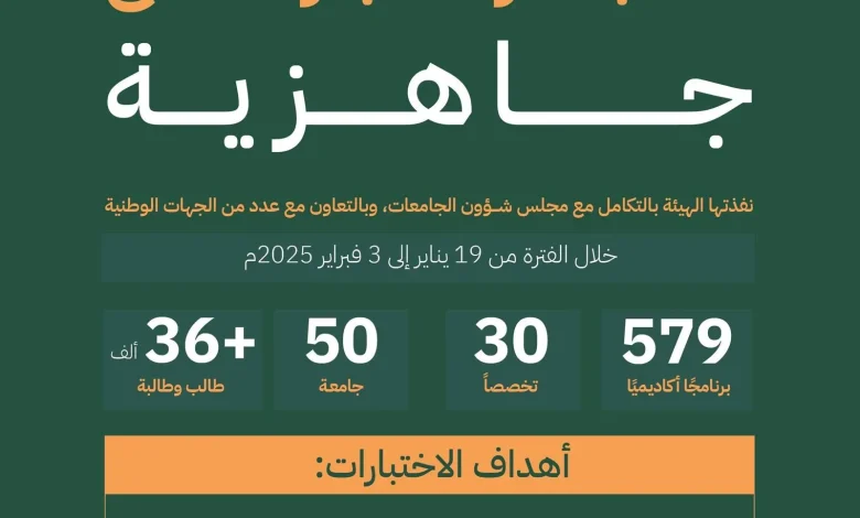 هيئة تقويم التعليم والتدريب تختتم تطبيق اختبارات جاهزية لأكثر من (575) برنامجًا أكاديميًا في (50) جامعة استهدفت أكثر من (36) ألف طالب وطالبة