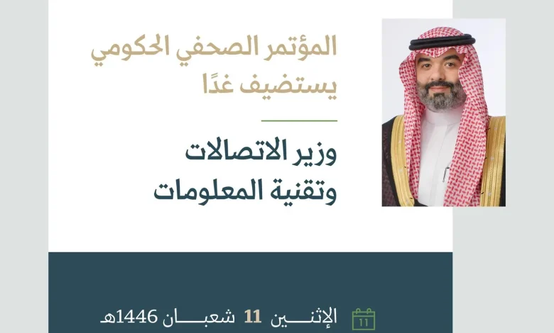 المؤتمر الصحفي الحكومي يستضيف وزير الاتصالات وتقنية المعلومات غدًا